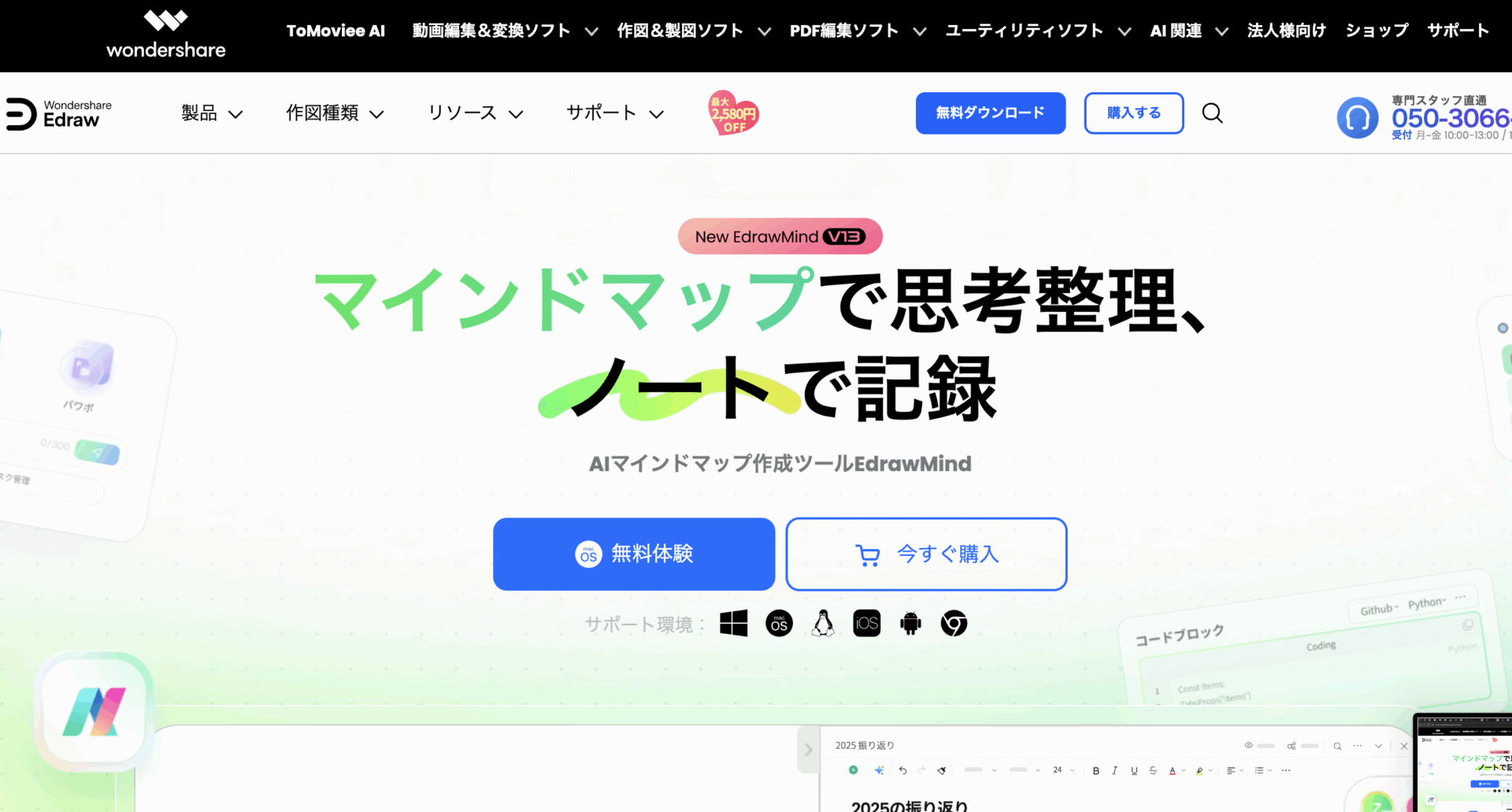 EdrawMindは、テンプレートが豊富で、見た目を整えながら素早く構造化できます。無料版でも基本機能は利用可能ですが、高度な書き出しや管理機能は有料版で拡張されます。企画整理からタスクの可視化まで幅広く活用できるツールです。