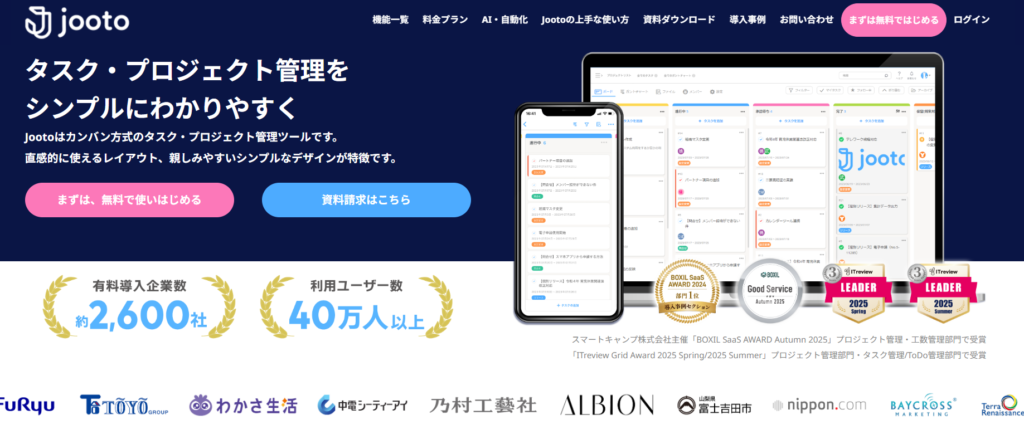 Jootoは、日々のタスク管理からプロジェクト全体の運営まで、幅広いチームや業種で活用できるツールと言えるでしょう。