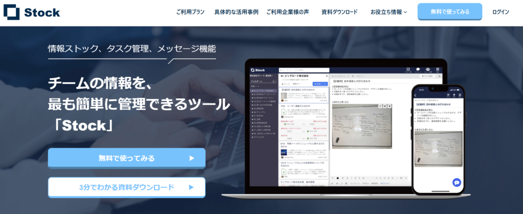 Stockは、クラウド型の情報共有ツールです。フォルダごとに、テキスト・ファイルをノート形式で保存できます。