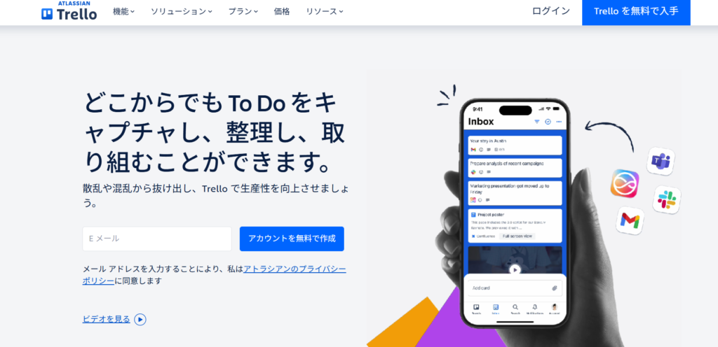 Trelloは、カンバン方式に基づいてチームのタスクを効率的に管理できるクラウド型ツールです。タスクは「カード」として登録され、「To Do」「作業中」「完了」などのリスト間をドラッグ&ドロップで移動させることで、直感的に進捗を管理できます。