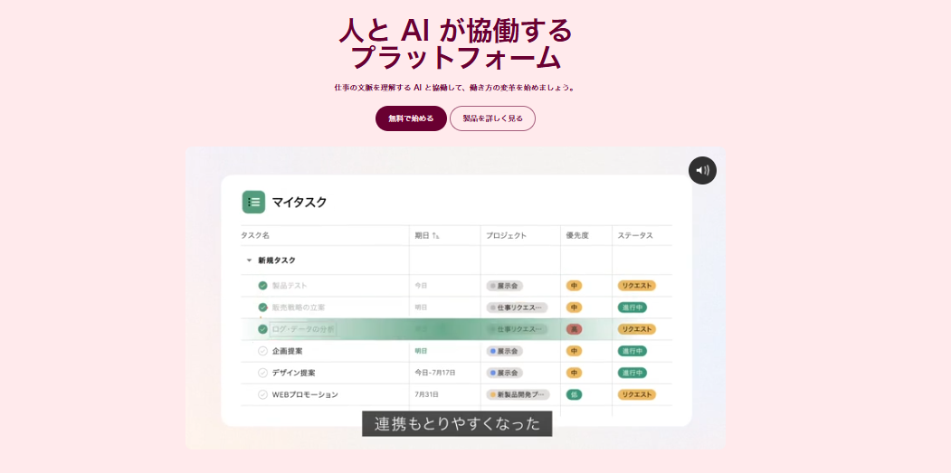 - ガントチャート/WBSの直感操作:タスク分解(WBS)からスケジュール編成(ガントチャート)までを一画面で編集し、依存関係・担当・期限を素早く更新できる