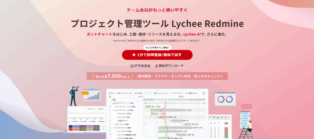 Lychee Redmineは、これまでに7,000社以上の企業に導入いただいております。業務改善・活用事例をチェックして、自社での再現イメージにお役立てください。