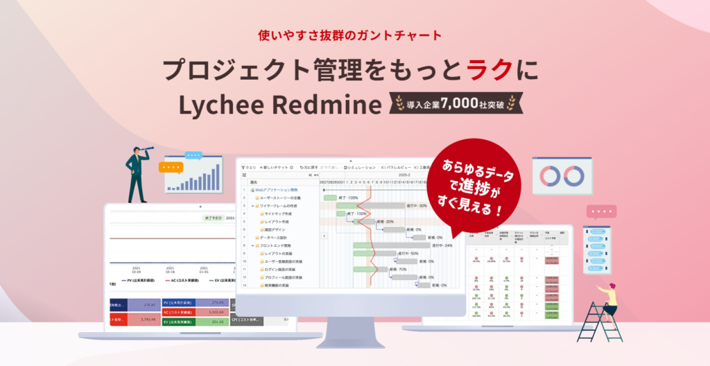 多機能なプロジェクト管理ツール「Lychee Redmine」を活用すれば、進捗やリソースの可視化だけでなく、計画と管理をシームレスに連動可能です。
