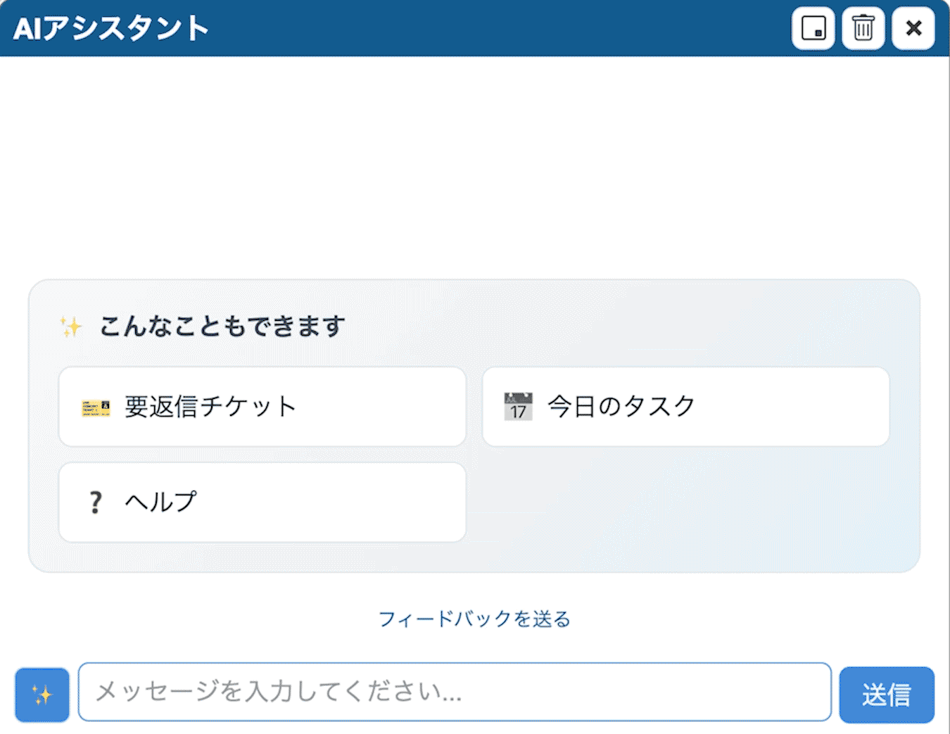 チャットからチケットを作成・更新。AIが操作を代⾏し、⼊⼒の⼿間を削減します。