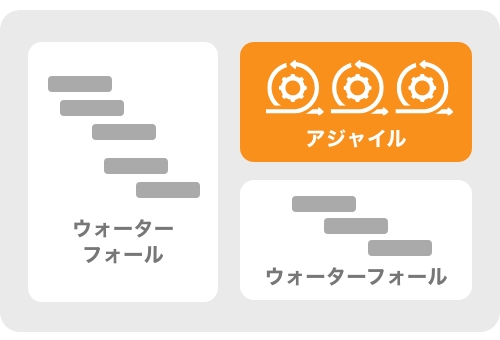 ガントチャートによる進捗管理とアジャイル開発を同じ環境で併用も可能です。まず一部のチームでアジャイル開発を始めて、段階的に広げていくことが可能です。