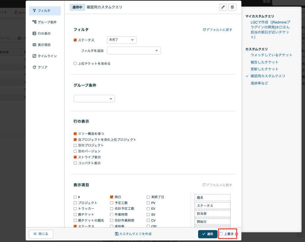 分子・分母別チケットフィルタ、親チケットを含めるかの個別設定