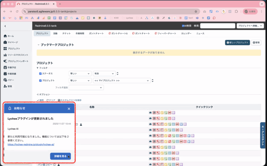 管理>プラグイン>Lychee Gantt Chart plugin4.11.5