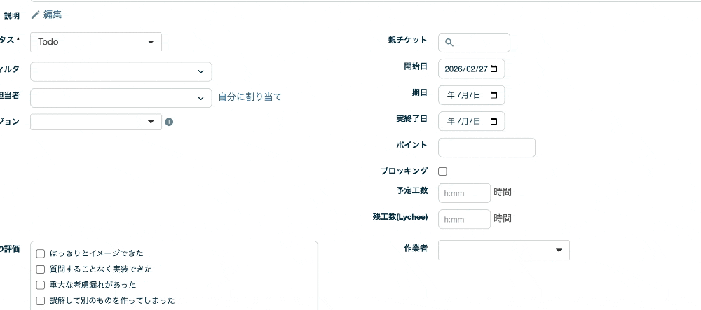 対象画面:チケット新規作成、チケット編集、チケット一括編集、Lycheeイシューフォームの編集ボタンによる編集