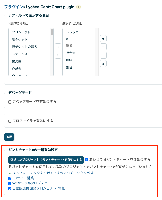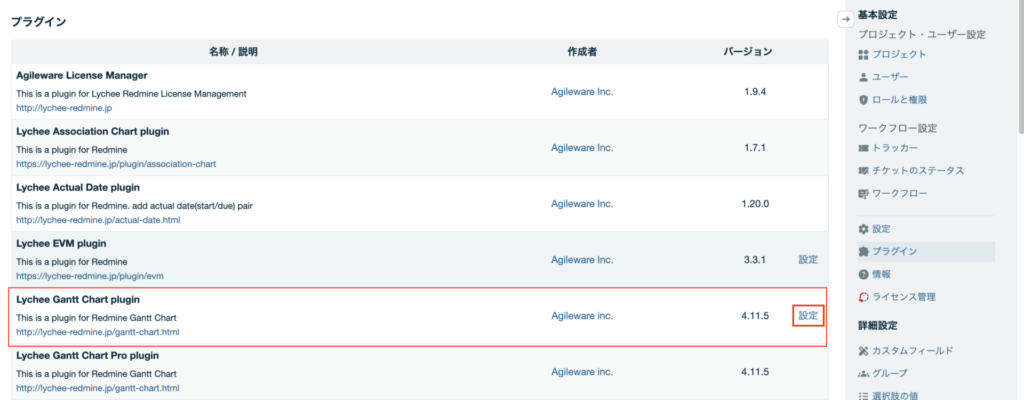 管理>プラグイン>Lychee Gantt Chart plugin4.11.5