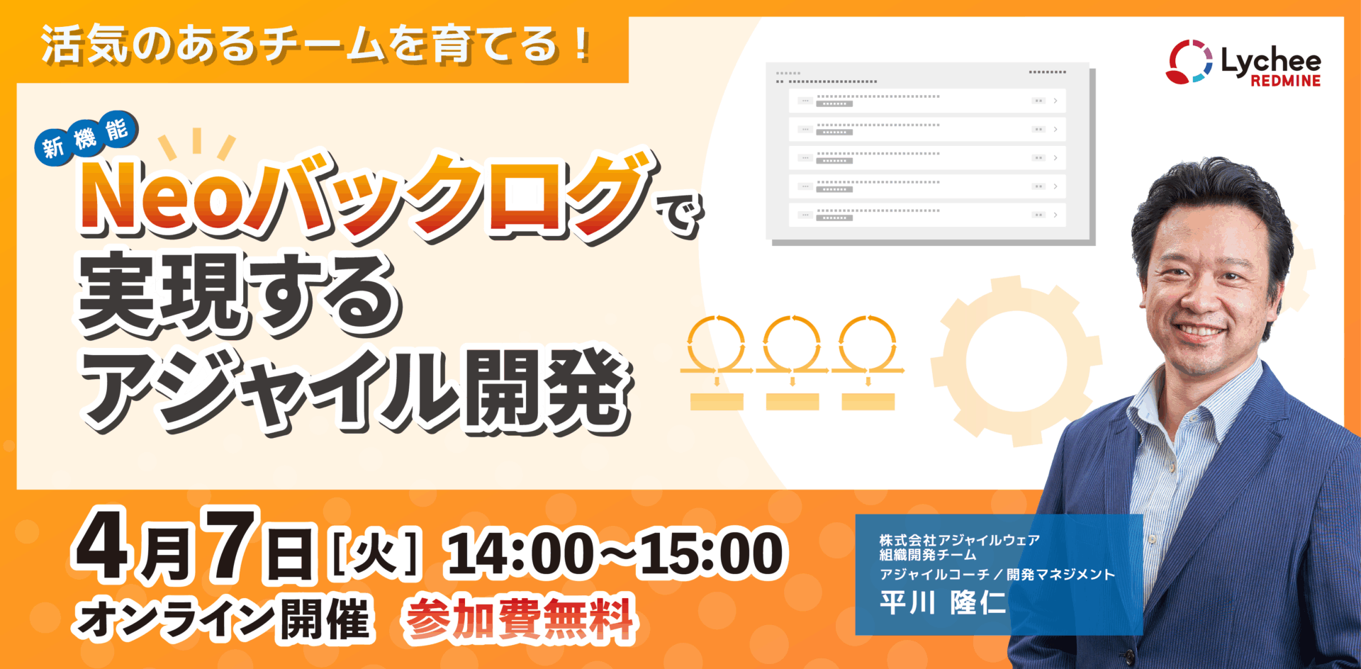アジャイル開発を導入したものの、 「スプリントのたびに計画を引き直すのが大変」 「バックログの優先順位を変えるたびにスケジュールが崩れる」 という悩みを抱えるチームは少なくありません。 本ウェビナーでは、Lychee Redmineの新機能「Neoバックログ」を題材に、 スクラムをうまく回し続けるための考え方と実践のコツをご紹介します。