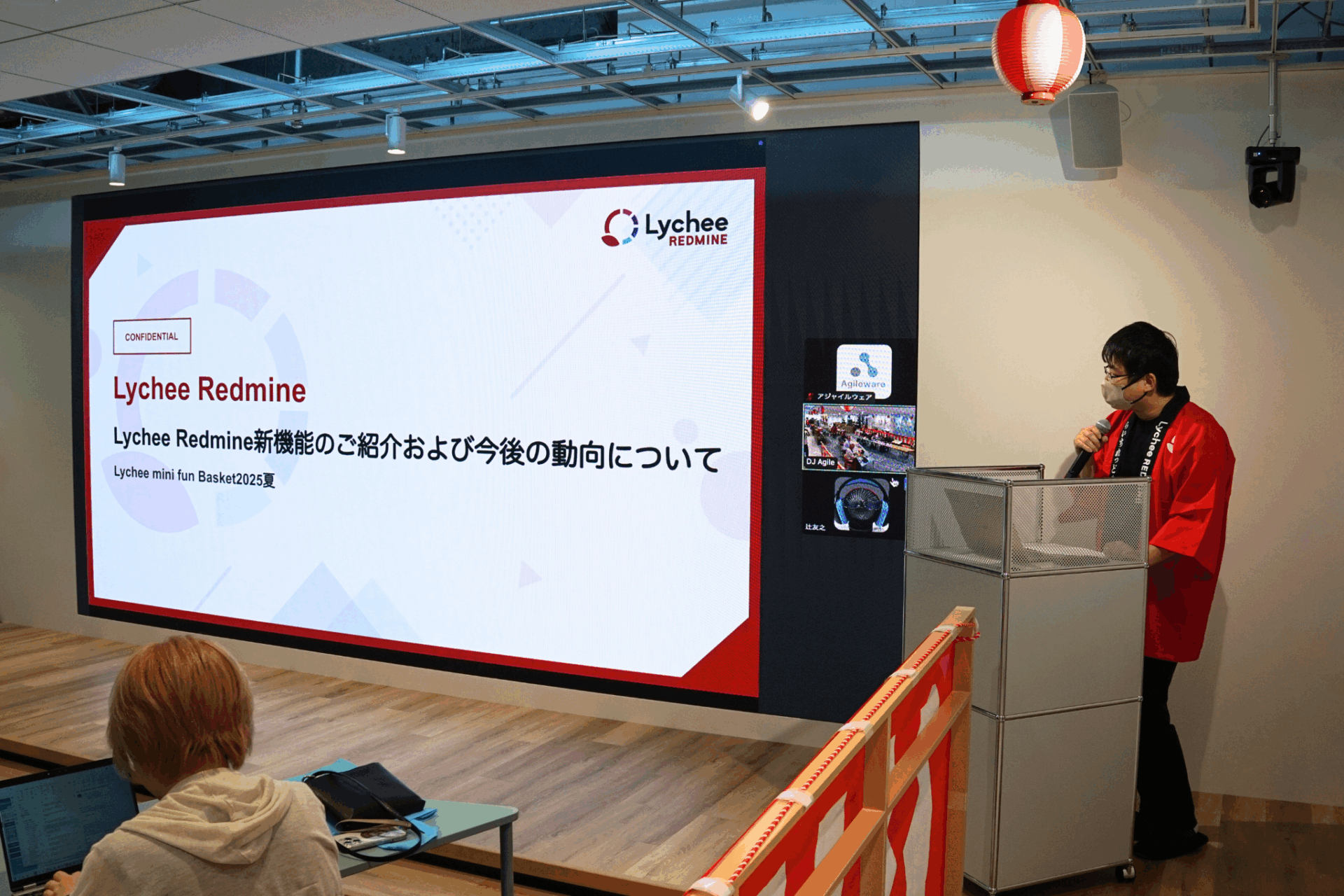 プロダクトオーナーの辻より、Lychee Redmineの最新アップデートと今後の開発ロードマップについて紹介しました。
